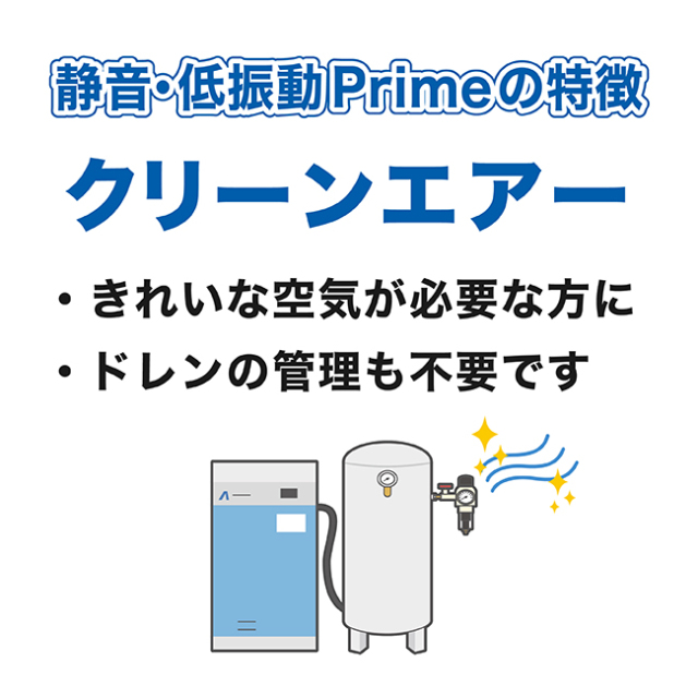 ※歯科技工所などの事務所内設置や農業関係など、きれいなエアーが必須の場合は、こちらのコンプレッサーが適しています。